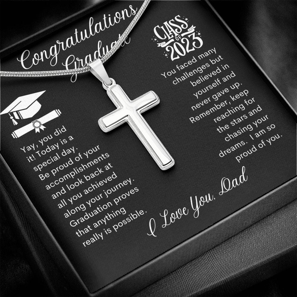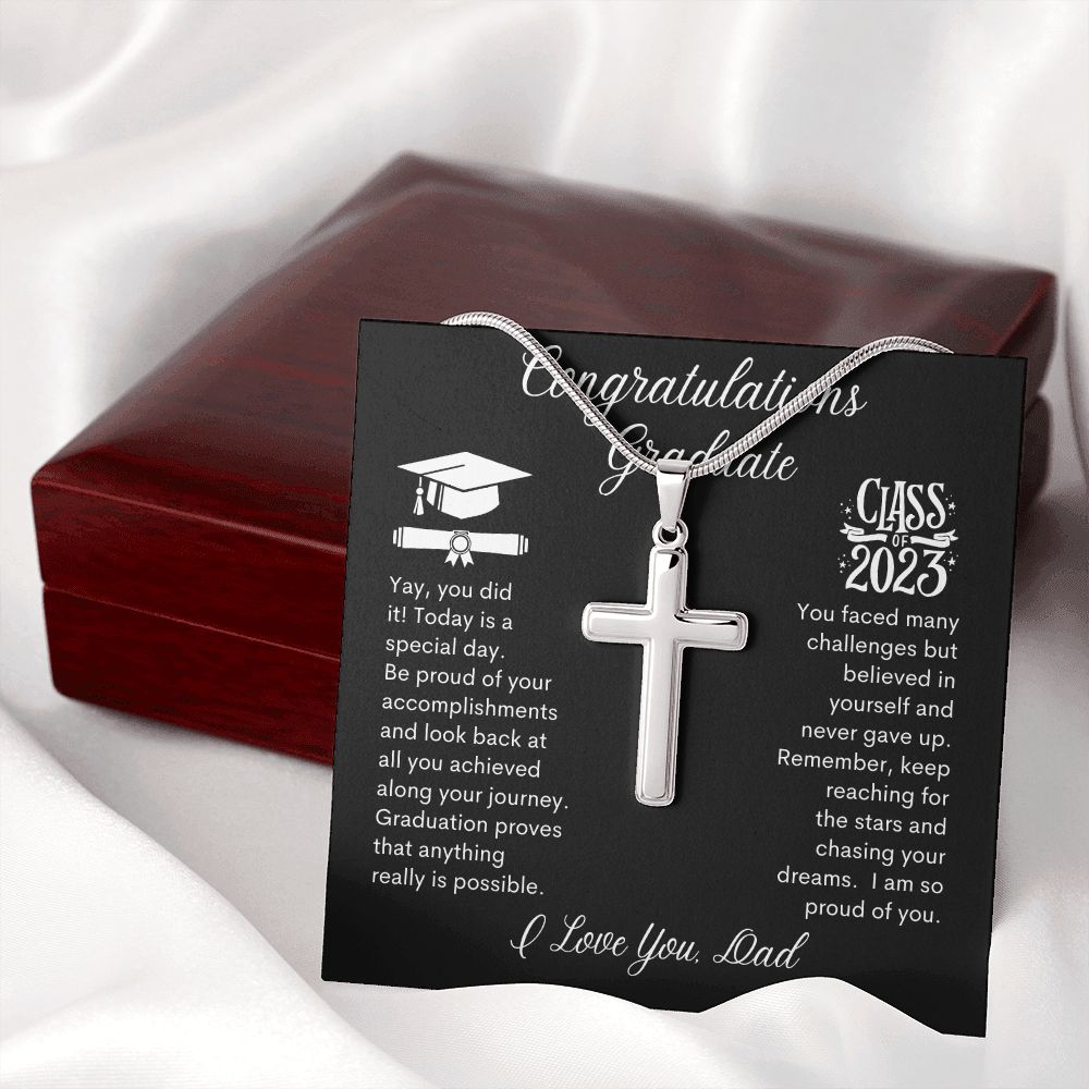 Graduate Yay you Did it, I Love You Dad -- Cross Necklace